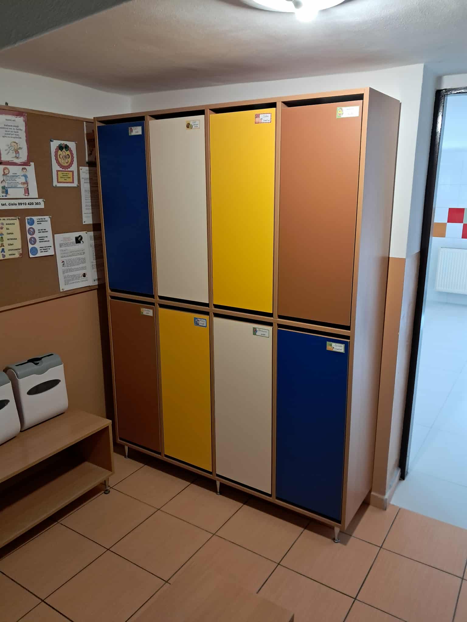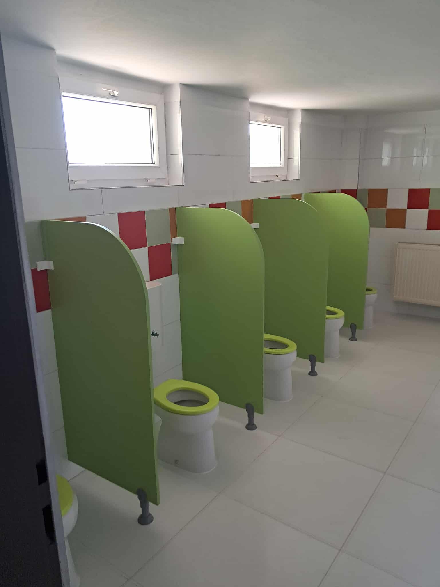 Okrem toho sa uskutočnila aj rekonštrukcia sociálnych zariadení. V škôlke boli nainštalované nové obklady, umývadlá a toalety, ktoré spĺňajú hygienické štandardy a sú prispôsobené potrebám detí. Modernizácia týchto priestorov výrazne prispela k zvýšeniu komfortu a bezpečnosti. V šatni pribudli nové skrinky pre deti, ktoré im umožňujú bezpečne a prehľadne uschovať svoje osobné veci. Tým sa zlepšila organizácia priestoru a zároveň sa podporuje samostatnosť detí pri každodenných činnostiach.