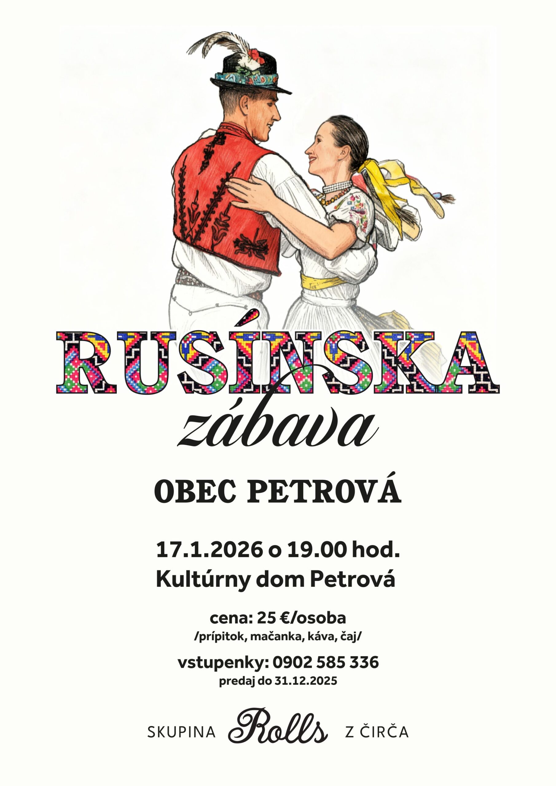 Plagát Rusínska zábava – 17.01.2026 o 19,00 hod. v KD Petrová